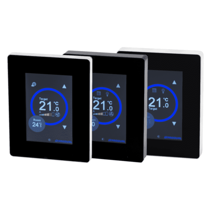 De regelaars uit de TRC-serie zijn ontworpen voor klimaatbeheersing in ruimtes met een moderne 3,5-inch kleuren touchscreen-interface. De regelaars hebben maximaal twee temperatuurtrappen voor verwarming en koeling, ventilatorsnelheid regeling en optioneel CO2-en luchtvochtigheidmeting. De units kunnen in verschillende klimaatregelingstoepassingen worden gebruikt, zoals fan coil units, koelplafond en zoneverwarming-koeling. De apparaten zijn verkrijgbaar met zowel Modbus RTU als BACnet MS-TP communicatie.