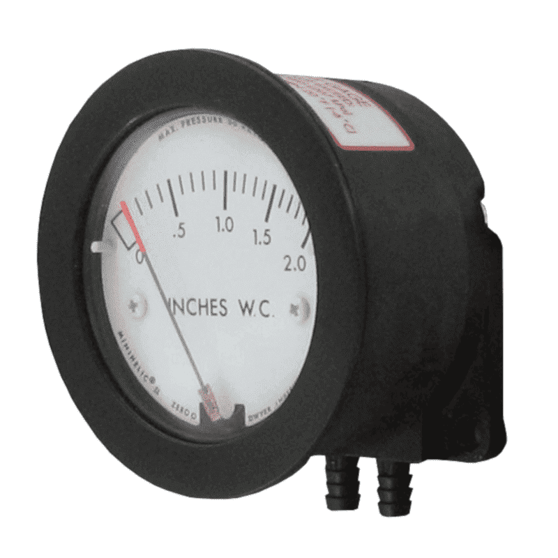 Dwyer Minihelic differential pressure gage Model: 2-5000-125PA Range: 0...125 Pa Max. pressure: 2,067 bar Process connection: 3/16" I.D. tubing
