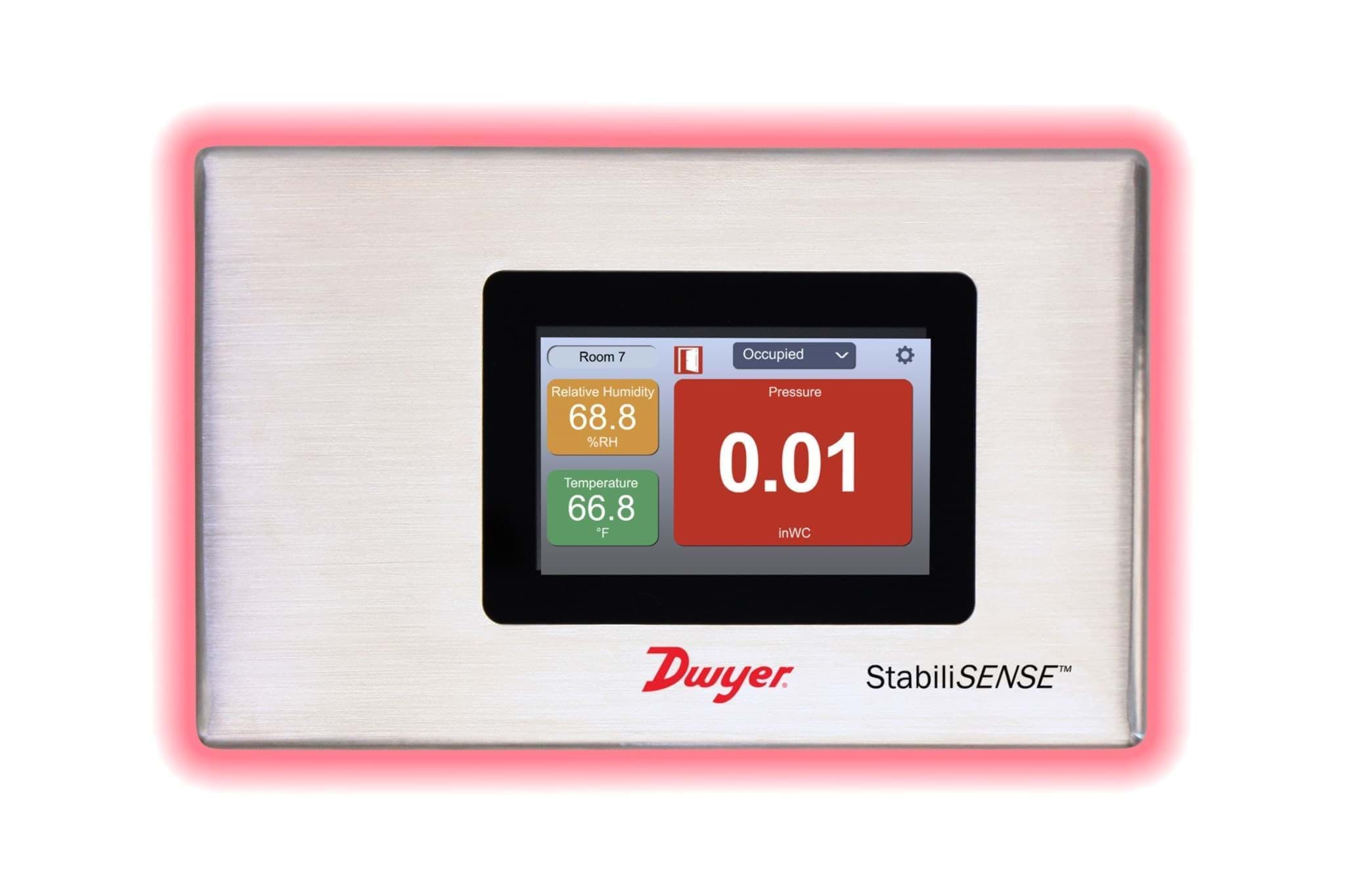 The Dwyer pressure monitor series RPME is designed for critical applications with low differential pressures. The transmitter uses a piezo pressure sensor to achieve high accuracy. There is a choice between ±0.5% or ±1% RSS. The RPME has the same dimensions as the Magnehelic which simplifies an upgrade in the field. The pressure monitor is suitable for applications requiring strict pressure monitoring and alarming. The Dwyer RPME can be configured to monitor positive and negative pressures in protected environments such as cleanroom, pharma and hospitals. The pressure transmitter with a fixed segment LCD (with backlight) provides access to pressure, calibration and alarm settings. In addition, the pressure monitor has a built-in status indication with LEDs that turn green within the set pressure range and orange when the pressure range is outside it. Furthermore, the RPME is equipped with 2 adjustable SPDT relays and 4…20 mA analog output.