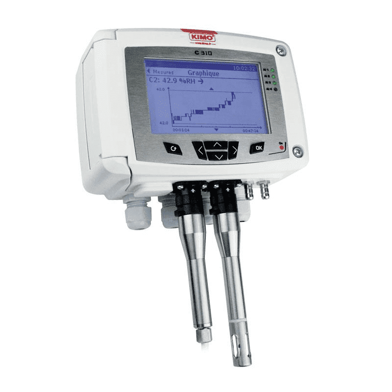 The new C310 series are multifonctional transmitters which can be extended by an internal pressure module and two external probes. The display can show up to 4 parameters, but can also display a trend graph and the min/max values of each channel. The C310 has two analog outputs, which can be extended by two more. Modbus and Ethernet communication are available as an option.