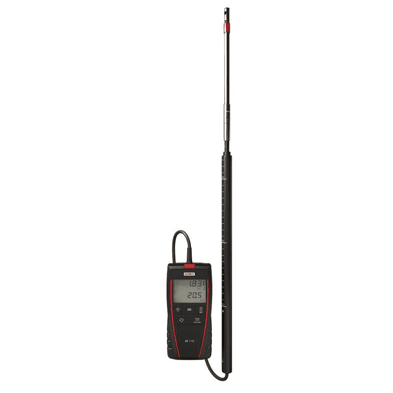 Reliable and accurate handheld meter to measure air velocity and flow. The VT110 series has a hotwire sensor with a built-in temperature sensor. Standard functions: min, max, hold, auto power off and choice of units. Each instrument is supplied in a carrying case and calibration report or test certificate (S models).