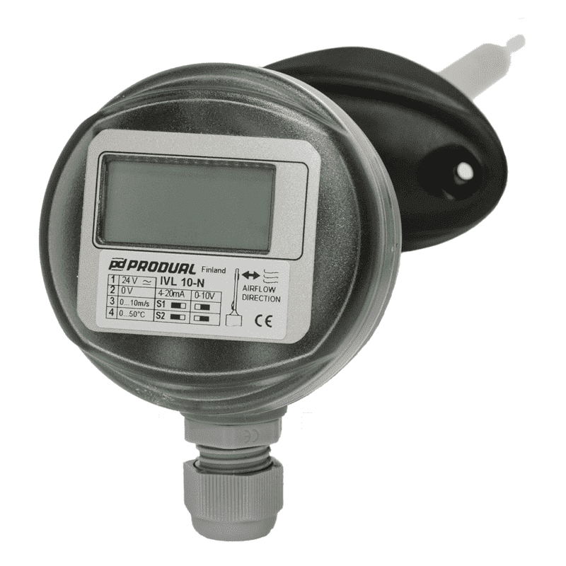 The reliable IVL air velocity transmitters work on the hot-wire measurement principle, which quarantees very good accuracy at low air velocity. The transmitters are suitable for air flow and temperature measurements in the air ducts. Air velocity transmitters are available with different measurement ranges and immersion lengths, with or without display