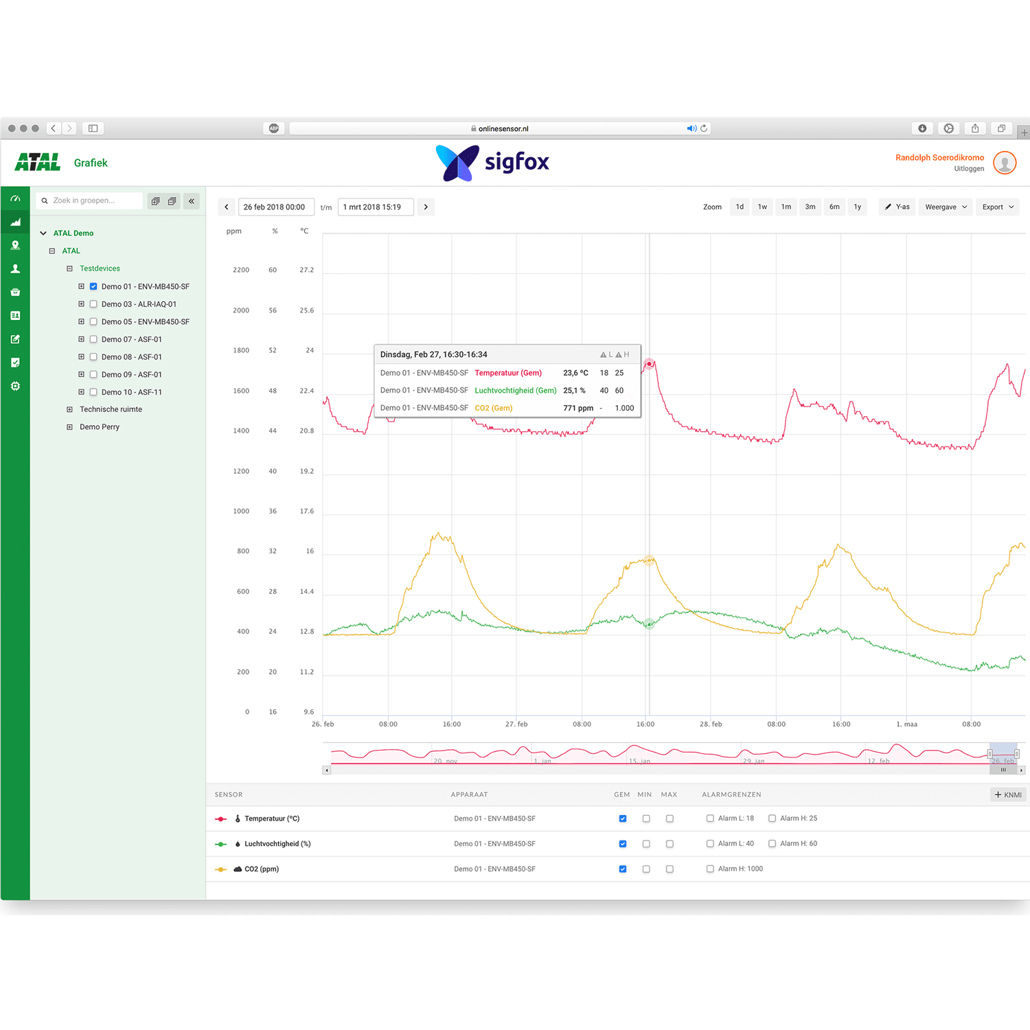 De ASF-sensoren zijn batterij gevoede draadloze IoTsensoren die gebruik maken van een landelijk dekkend netwerk, genaamd Sigfox. Dankzij het landelijk dekkende netwerk kunnen de sensoren worden ingezet voor uiteenlopende binnen- en buitentoepassingen. Denk bijvoorbeeld aan (temperatuur) meting aan bruggen, vorst aan de grond-signalering, watertemperatuurmetingen ter voorkoming van legionella en binnenklimaatonderzoek.