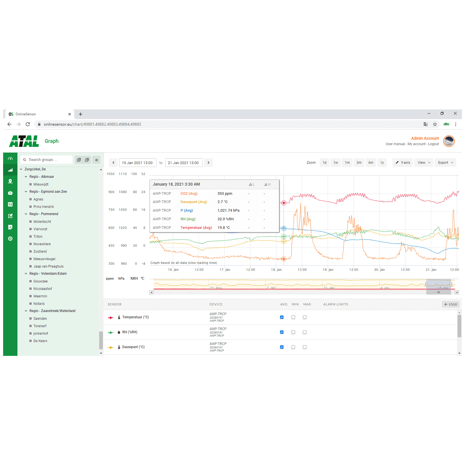 kunnen alle “connected” sensoren overzichtelijk realtime worden gepresenteerd. Verder biedt de portal praktische mogelijkheden zoals