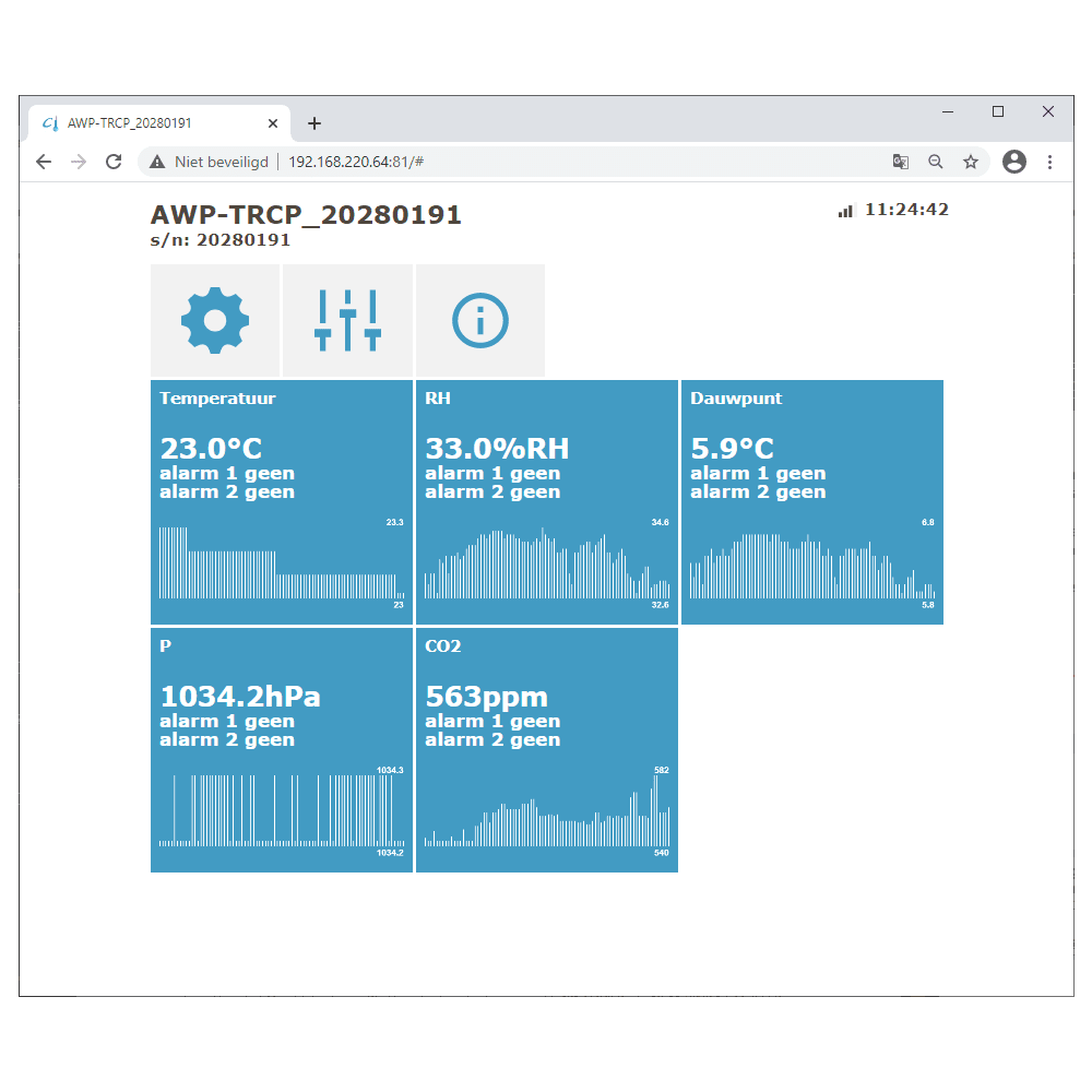 Online meten en bewaken van: temperatuur, relatieve vochtigheid, dauwpunt en atmosferische druk