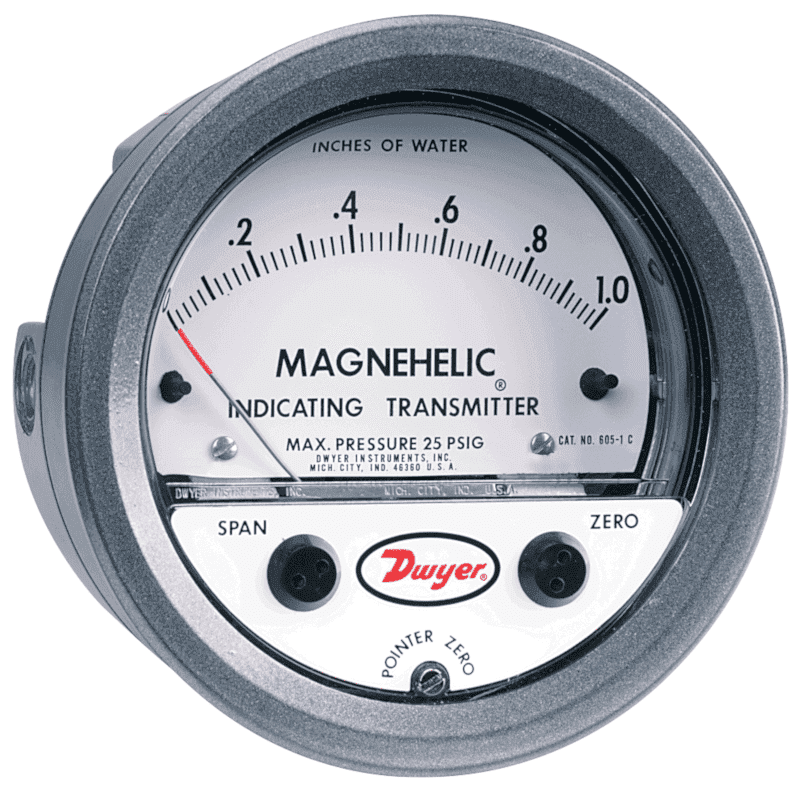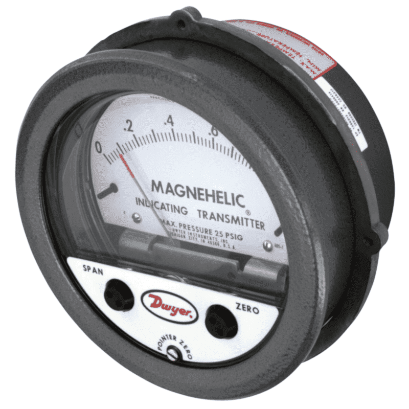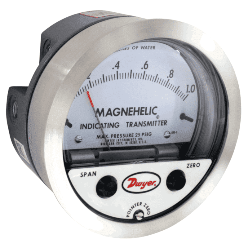 De bekende Magnehelic, maar dan met analoge uitgang als transmitter maakt het voor u mogelijk een druk- of drukverschilsignaal lokaal af te lezen en met een 4 tot 20 mA-signaal te koppelen aan een GBS of PLC.