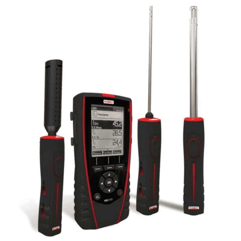 De multifunctionele Kimo HQ210 binnenklimaatmeter kan alle parameters meten die van belang zijn voor een prettig binnenklimaat. Zo kan de HQ210 temperatuur, relatieve vochtigheid, kooldioxide (CO2), koolmonoxide (CO) en omni-directionele flow (tocht) meten. De HQ210 serie is beschikbaar in samengestelde pakketten met een selectie aan sensoren, of geheel naar eigen wens samen te stellen. De handmeter wordt geleverd in een robuuste draagkoffer en de pakketten ook met kalibratie van de bijgeleverde sensoren.